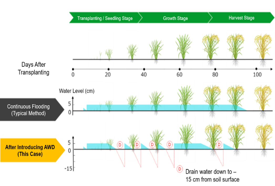 *2: Alternate wetting and drying (intermittent irrigation). NARO website: https://www.naro.go.jp/project/results/4th_laboratory/niaes/2017/niaes17_s12.html